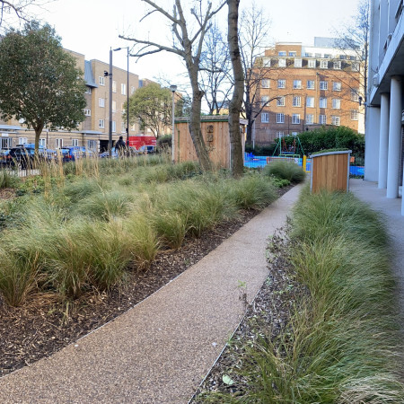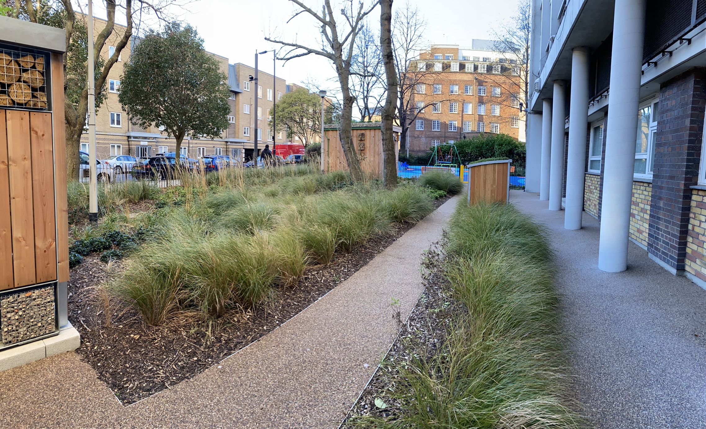 Revised levels made for easier access to the ground floor flats, and the play area included some new equipment along with fresh rubber safety surfacing.