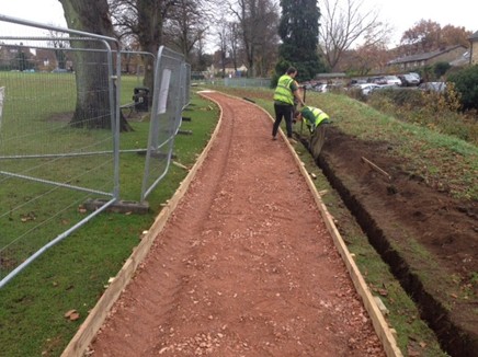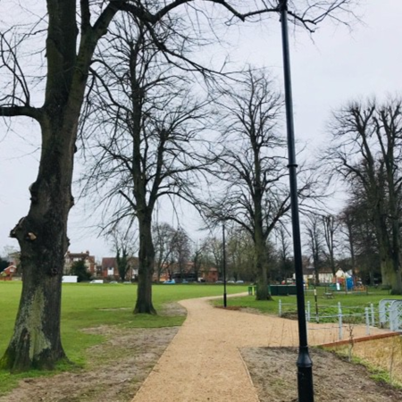 Saffron Walden Common had a muddy path leading from the car park across to the other side, so a tender was issued for a self binding gravel path, partially no dig with lighting to assist passage in the dark winter evenings.